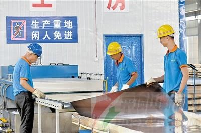 無(wú)錫不銹鋼板6月16日訊 6月13日,工人在車(chē)間加工彩色不銹鋼板材。