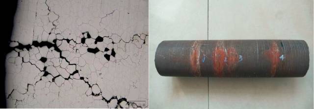 例如:某公司合成氨廠爐的工藝氣預(yù)熱管因為晶間腐蝕引起的開裂,發(fā)生泄漏事故。預(yù)熱管出現(xiàn)晶間腐蝕是因為奧氏體不銹鋼晶界析出Cr23C6,在管內(nèi)Cl-作用下管子短期出現(xiàn)晶間腐蝕開裂。